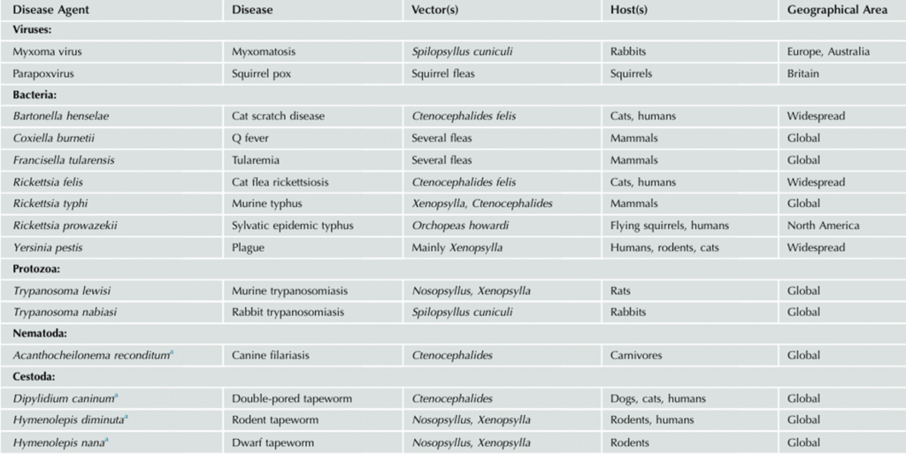 This article provides a clinical perspective on key flea-borne diseases, their etiological agents, transmission mechanisms, symptomatology, and control strategies.