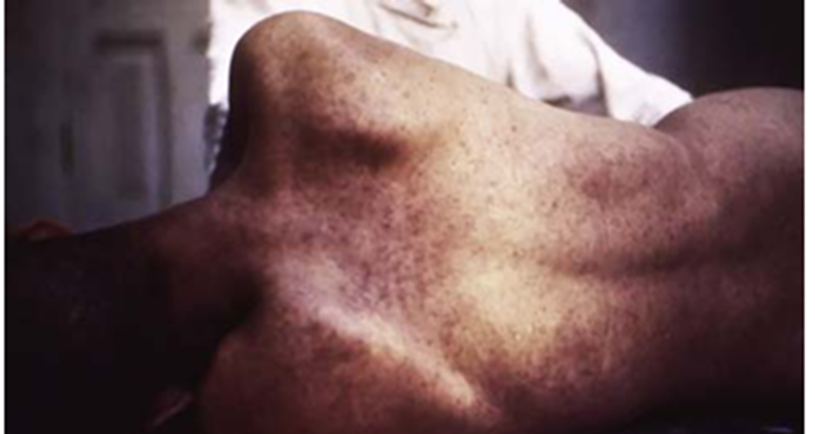 - Erythematous papules, excoriations, and post-inflammatory hyperpigmentation, especially along waistline and axillae