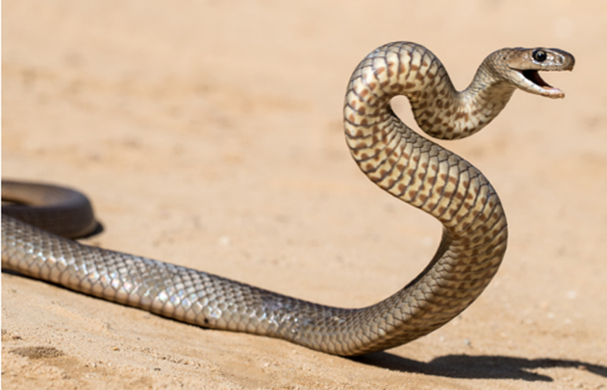 Highly agile and capable of rapid strikes. Its neurotoxic venom can cause respiratory failure without prompt medical intervention.